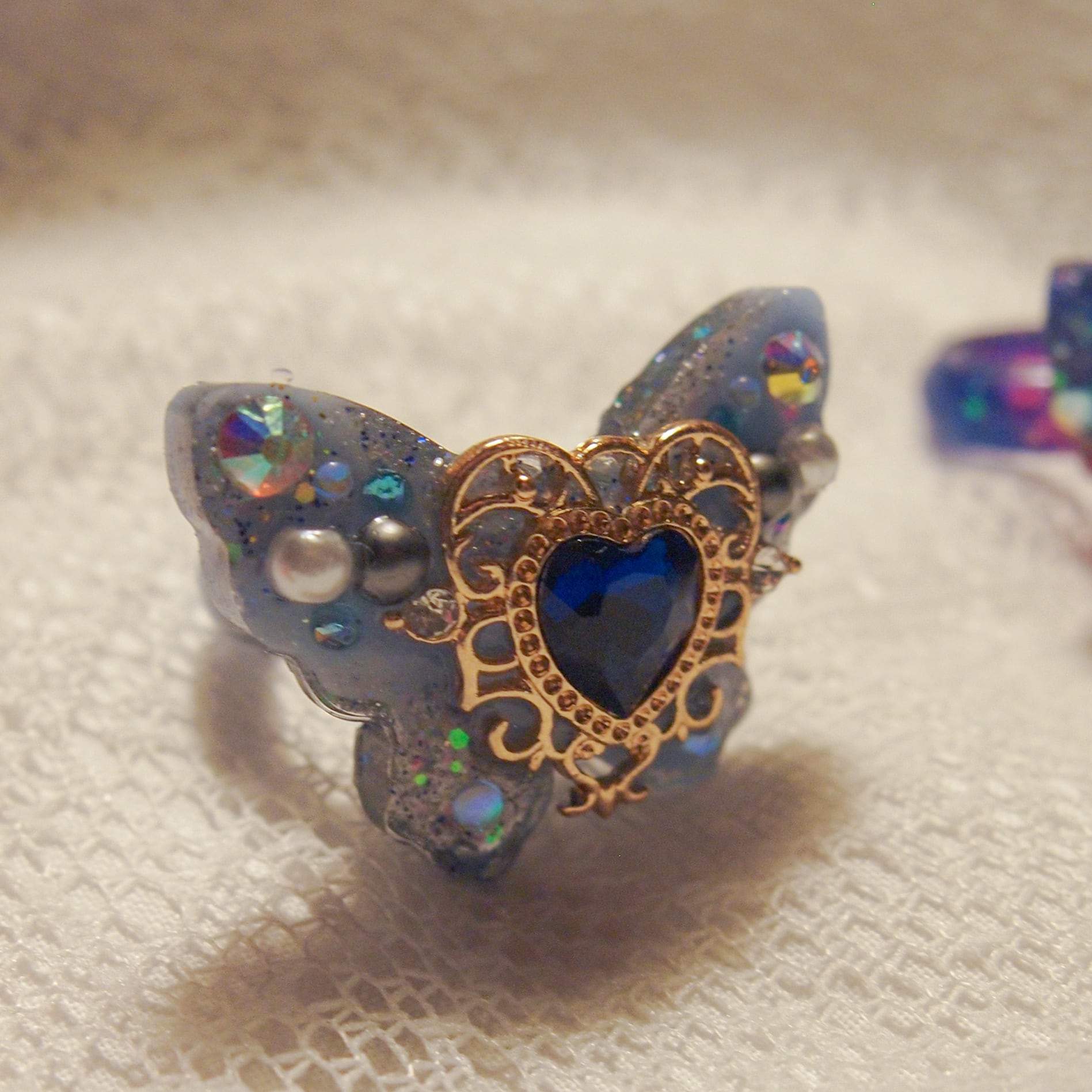 きまぐれにレジンで拵えた、蝶のリング。